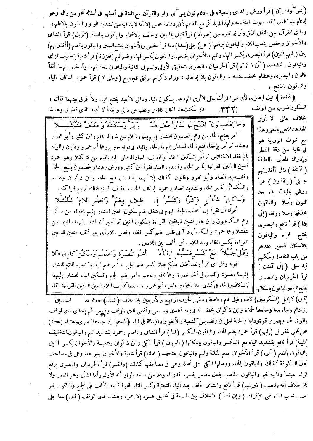 قوله: وقل أي اقرأ وَلَقَدْ أَضَلَّ مِنْكُمْ جِبِلًّا [يس: 62] بكسر ضم الجيم وكسر ضم الباء وتشديد اللام للمشار إليهما بالهمزة والنون في أخو نصرة وهما نافع وعاصم وأمر بضم الجيم وتسكين الباء للمشار إليهما بالكاف والحاء في كذي حلا وهما ابن عامر وأبو عمرو، ولهما تخفيف اللام فتعين للباقين القراءة بإبقاء