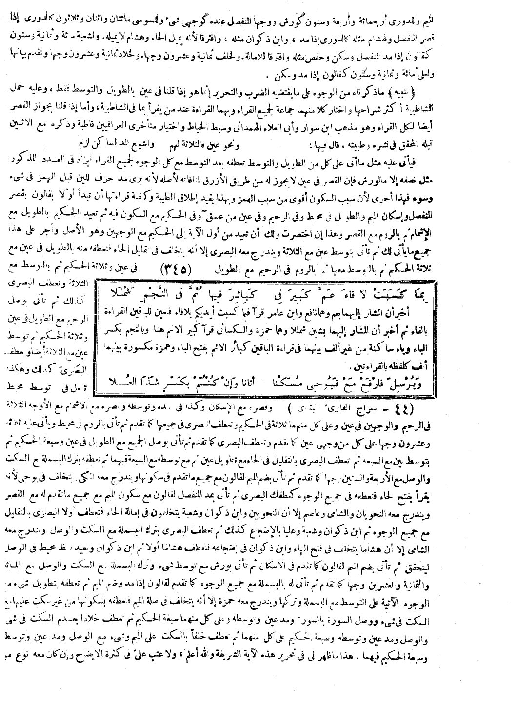 30] بلا فاء فتعين للباقين القراءة بالفاء ثم أخبر أن المشار إليهما بشين شمللا وهما حمزة والكسائي قرآ كبير الإثم هنا وبالنجم بكسر الباء وياء ساكنة من غير ألف بينهما في قراءة الباقين كبائر الإثم بفتح الباء وهمزة مكسورة بينهما ألف كلفظه بالقراءتين.
