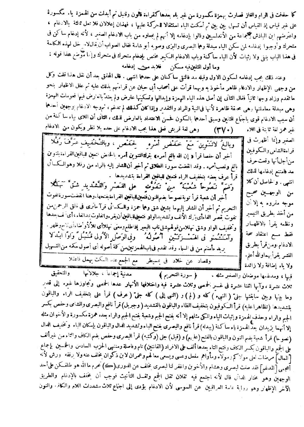أخبر أن حفصا قرأ إِنَّ اللَّهَ بالِغُ أَمْرِهِ [الطلاق: 3] بترك التنوين أمره بالخفض فتعين للباقين القراءة بتنوين بالغ ونصب أمره. وقد انقضت سورة الطلاق ثم أخبر أن المشار إليه بالراء من رفلا وهو الكسائي قرأ عرف بعضه بتخفيف الراء فتعين للباقين القراءة بتشديدها.