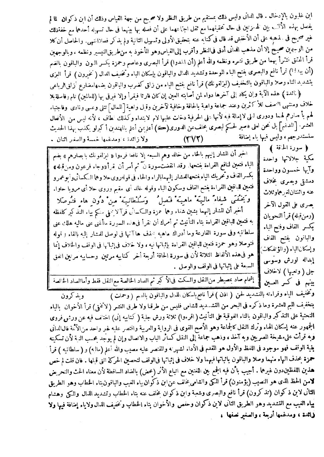 أخبر أن المشار إليهما بشين شفاء وهما حمزة والكسائي قرآ لا يخفى منكم بياء التذكير كلفظه به فتعين للباقين القراءة بتاء التأنيث ثم أمرك أن تقرأ في هذه السورة ما أَغْنى عَنِّي مالِيَهْ [الحاقة: 28]، هَلَكَ عَنِّي سُلْطانِيَهْ [الحاقة: 29]، وَما أَدْراكَ ما هِيَهْ