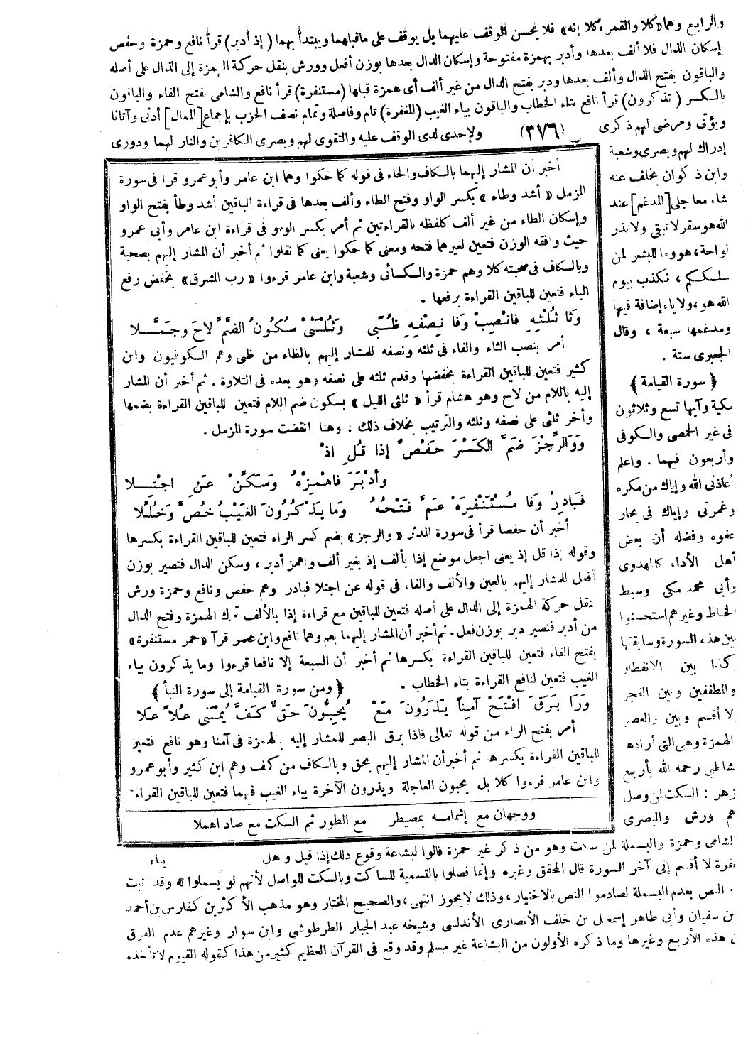 أمر بفتح الراء من قوله تعالى فَإِذا بَرِقَ الْبَصَرُ [القيامة: 7] للمشار إليه بالهمزة في آمنا وهو نافع فتغير للباقين القراءة بكسرها ثم أخبر أن المشار إليهم بحق وبالكاف من كف وهم ابن كثير وأبو عمرو وابن عامر قرءوا (كلا بل يحبون العاجلة) [القيامة: 20]، (ويذرون الآخرة) [القيامة: 21] بياء الغيب فيهما فتعين للباقين القراءة