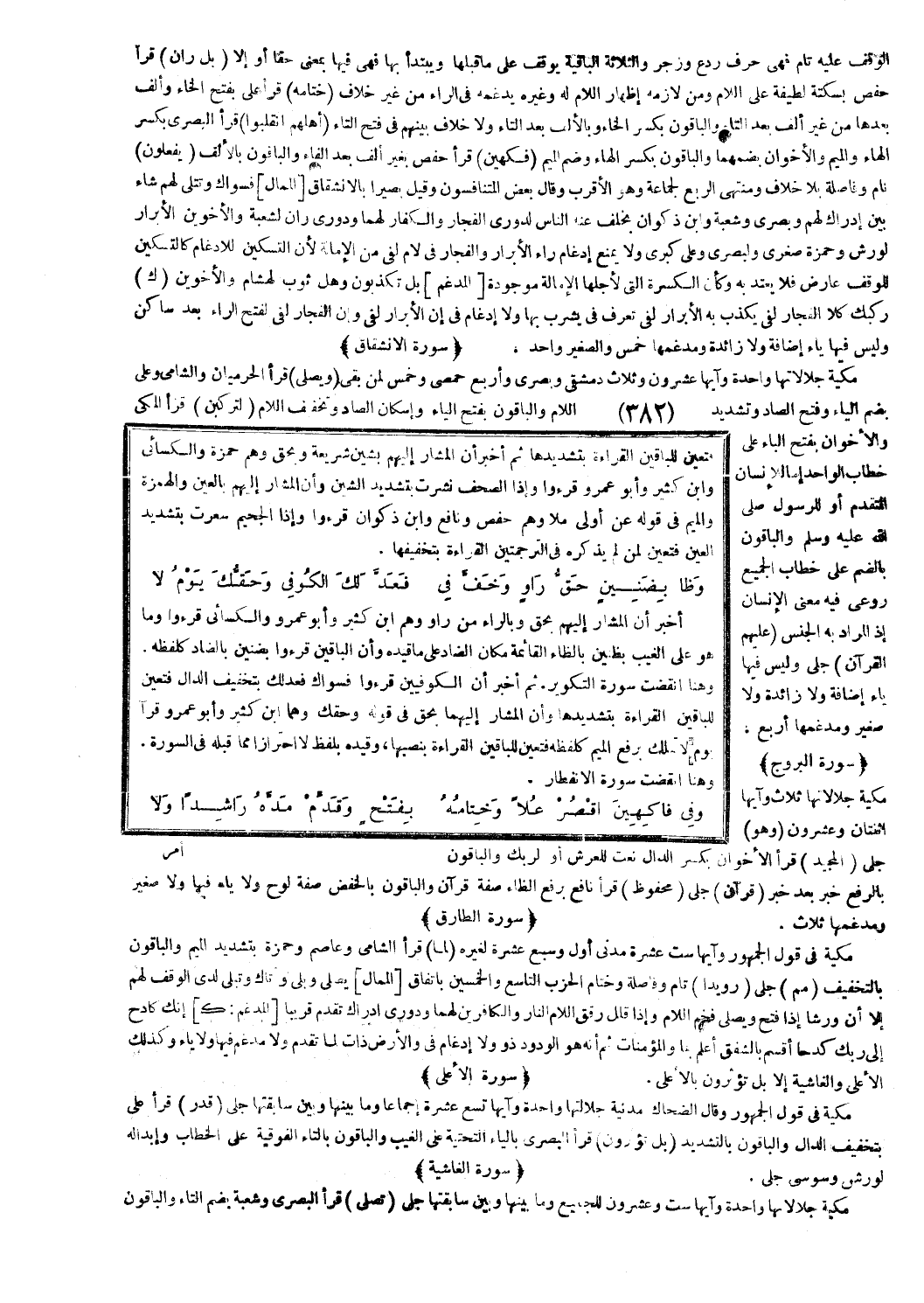 قرءوا بضنين بالضاد كلفظه. وهنا انقضت سورة التكوير. ثم أخبر أن الكوفيين قرءوا فَسَوَّاكَ فَعَدَلَكَ [الانفطار: 7] بتخفيف الدال فتعين للباقين القراءة بتشديدها وأن المشار إليهما بحق في قوله وحقك وهما ابن كثير وأبو عمرو قرآ يَوْمَ لا تَمْلِكُ [الانفطار: 19] برفع الميم كلفظه فتعين للباقين القراءة بنصبها، وقيده بلفظ لا احترازا مما قبله في السورة.