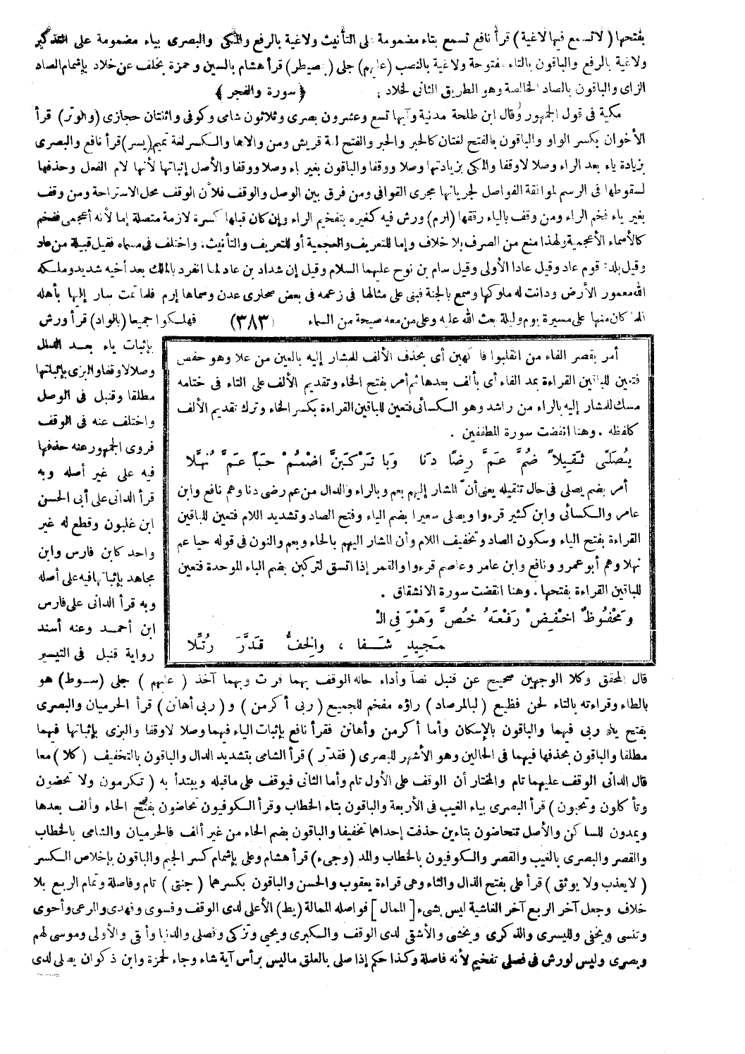 أمر بضم يصلي في حال تثقيله يعني أنّ المشار إليهم بعم وبالراء والدال من عم رضى دنا وهم نافع وابن عامر والكسائي وابن كثير قرءوا وَيَصْلى سَعِيراً [الانشقاق: 12] بضم الياء وفتح الصاد وتشديد اللام فتعين للباقين القراءة بفتح الياء وسكون الصاد وتخفيف اللام وأن المشار إليهم بالحاء وبعم والنون في قوله حيا عم نهلا وهم أبو عمرو ونافع وابن عامر وعاصم قرءوا وَالْقَمَرِ إِذَا اتَّسَقَ [الانشقاق: 18] لتركبن بضم الباء الموحدة فتعين للباقين القراءة بفتحها. وهنا انقضت سورة الانشقاق.