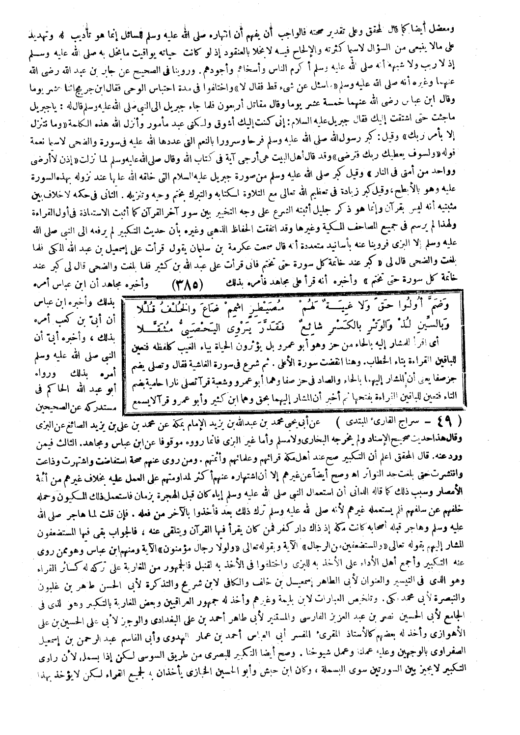 بياء الغيب كلفظه فتعين للباقين القراءة بتاء الخطاب. وهنا انقضت سورة الأعلى. ثم شرع في سورة الغاشية فقال وتصلى بضم حز صفا يعني أن المشار إليهما بالحاء والصاد في حز صفا وهما أبو عمرو وشعبة قرآ تَصْلى ناراً حامِيَةً [الغاشية: 4] بضم التاء فتعين للباقين القراءة بفتحها ثم أخبر أن المشار إليهما بحق وهما ابن كثير وأبو عمرو قرآ لا يسمع