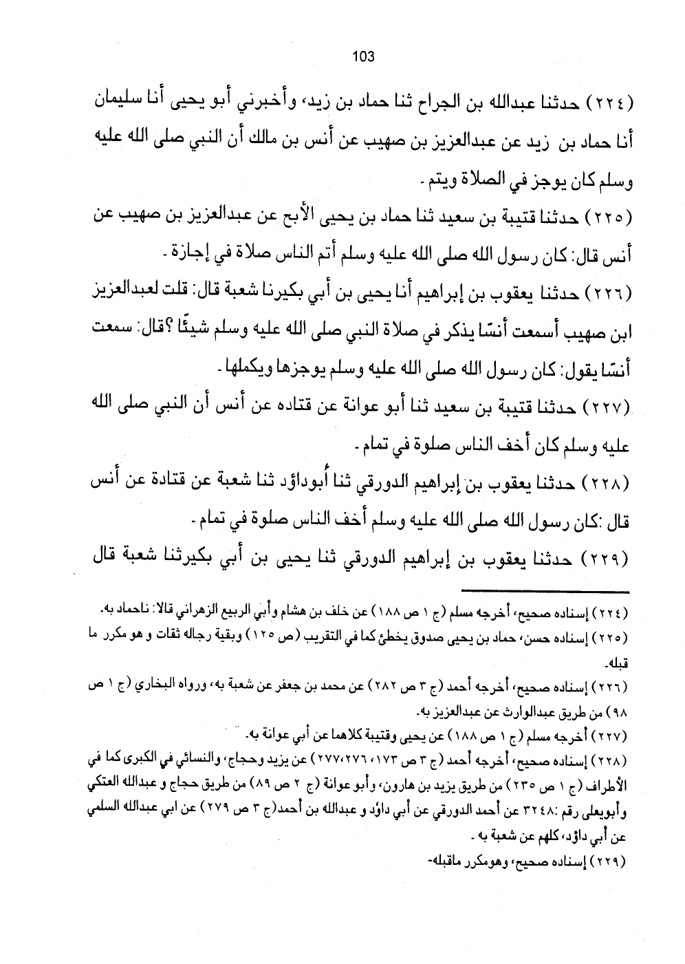 [224] إِسْنَاده صَحِيح، أخرجه مُسلم (ج1 ص188) عَن خلف بن هِشَام وَأبي الرّبيع الزهْرَانِي قَالَا: نَا حَمَّاد بِهِ.