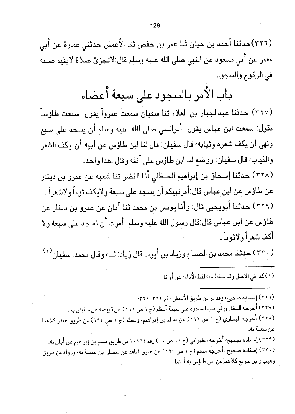 [327] أخرجه البُخَارِيّ فِي بَاب السُّجُود على سَبْعَة أعظم (ج1 ص112) عَن قبيصَة عَن سيان بِهِ.