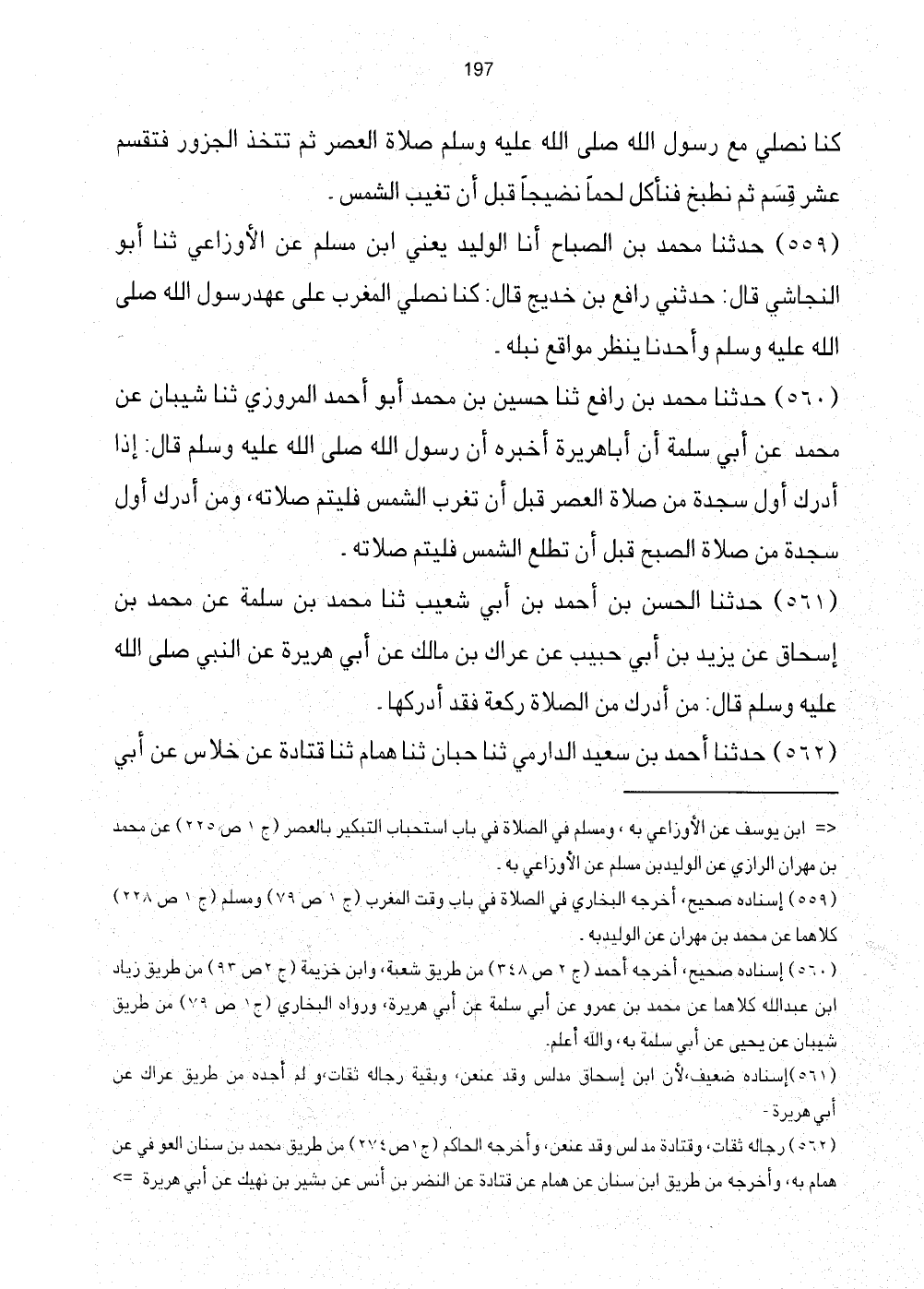 [559] إِسْنَاده صَحِيح، أخرجه البُخَارِيّ فِي الصَّلَاة فِي بَاب وَقت الْمغرب (ج1 ص79) وَمُسلم (ج1 ص228) كِلَاهُمَا عَن مُحَمَّد بن مهْرَان عَن الْوَلِيد بِهِ.