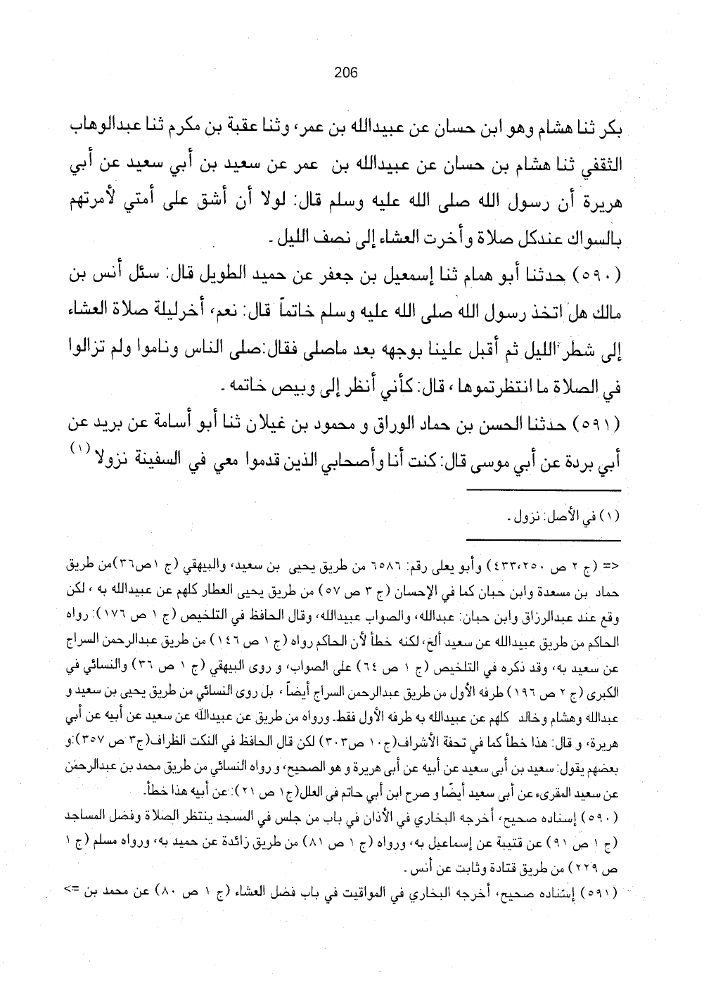 [591] إِسْنَاده صَحِيح، أخرجه البُخَارِيّ فِي الْمَوَاقِيت فِي بَاب فضل الْعشَاء (ج1 ص80) عَن مُحَمَّد بن =