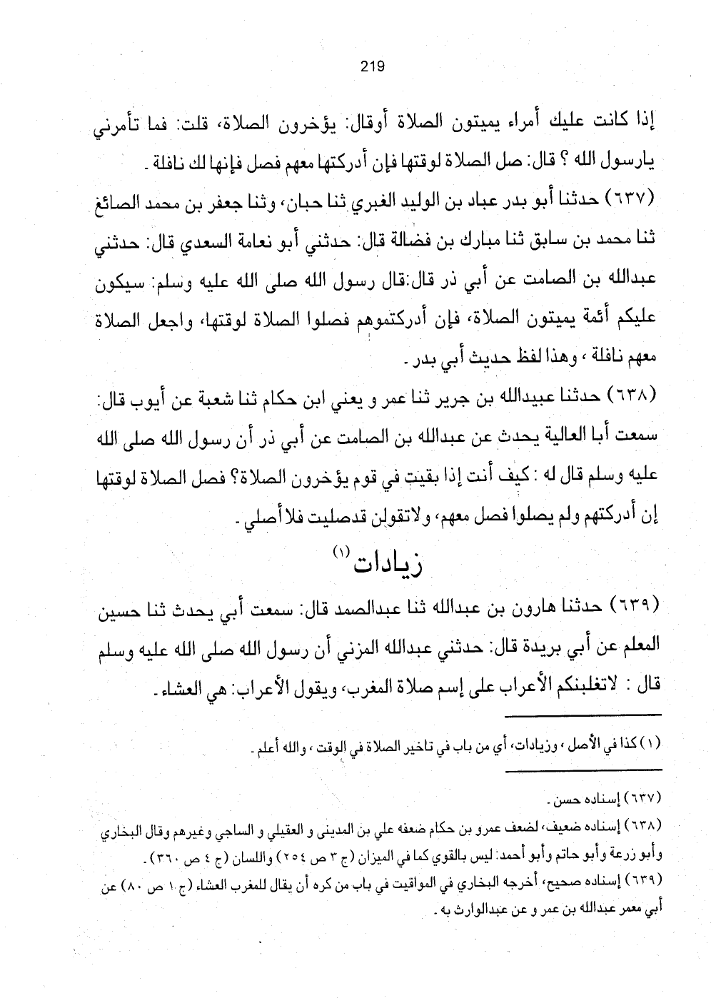 [639] إِسْنَاده صَحِيح، أخرجه البُخَارِيّ فِي الْمَوَاقِيت فِي بَاب من كره أَن يُقَال للمغرب الْعشَاء (ج1 ص80) عَن أبي معمر عبد الله بن عمر وَعَن عبد الْوَارِث بِهِ.