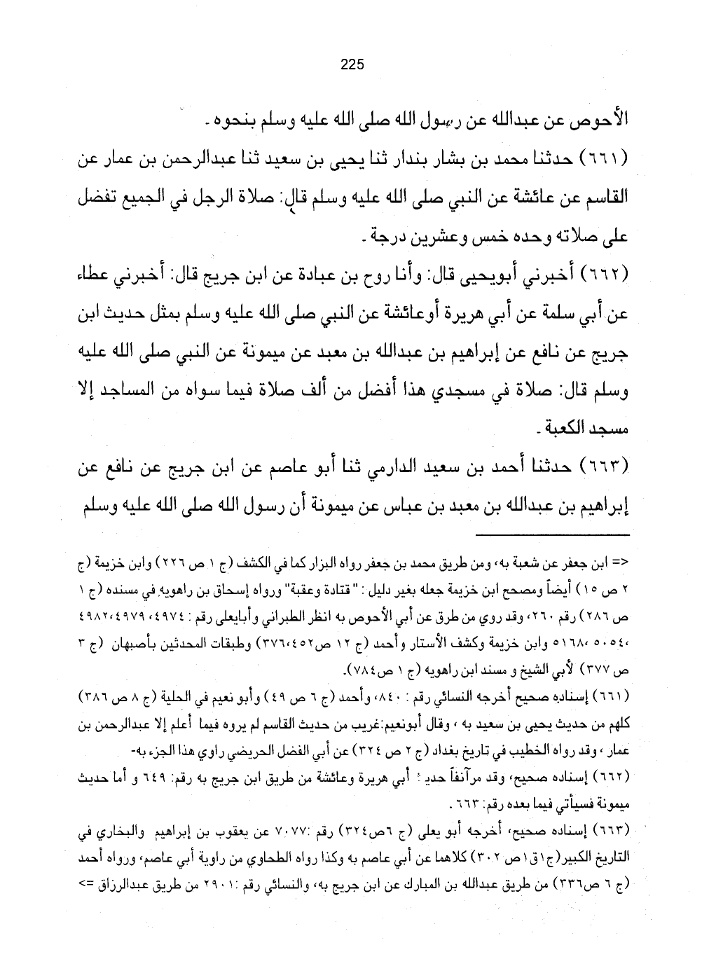 [663] إِسْنَاده صَحِيح، أخرجه أَبُو يعلى (ج6 ص324) رقم: 7077 عَن يَعْقُوب بن إِبْرَاهِيم وَالْبُخَارِيّ فِي التَّارِيخ الْكَبِير (ج1 ق1 ص302) كِلَاهُمَا عَن أبي عَاصِم بِهِ وَكَذَا رَوَاهُ الطَّحَاوِيّ من راوية أبي عَاصِم، وَرَوَاهُ أَحْمد (ج6 ص336) من طَرِيق عبد الله بن الْمُبَارك عَن ابْن جريج بِهِ، وَالنَّسَائِيّ رقم: 2901 من طَرِيق عبد الرَّزَّاق =