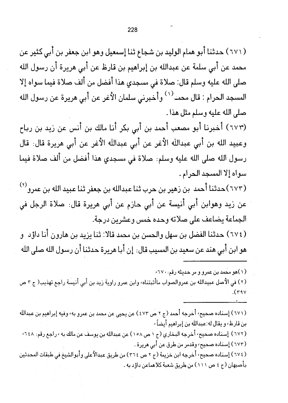 [671] إِسْنَاده صَحِيح، أخرجه أَحْمد (ج2 ص473) عَن يحيى عَن مُحَمَّد بن عَمْرو بِهِ، وَفِيه إِبْرَاهِيم بن عبد الله بن قارظ، وَيُقَال لَهُ: عبد الله بن إبراهم أَيْضا.