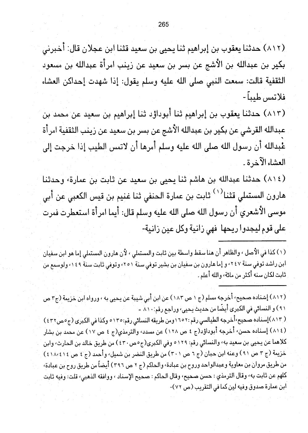 [812] إِسْنَاده صَحِيح، أخرجه مُسلم (ج1 ص183) عَن ابْن أبي شيبَة عَن يحيى بِهِ، وَرَوَاهُ ابْن خُزَيْمَة (ج3 ص91) وَالنَّسَائِيّ فِي الْكُبْرَى أَيْضا من حَدِيث يحيى، وراجع رقم: 810.