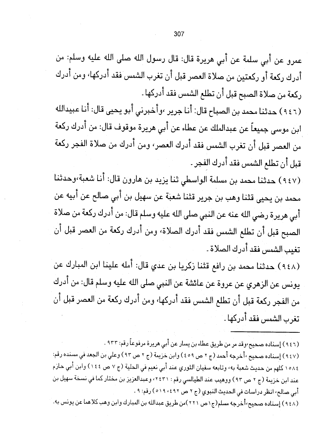 947 - حَدَّثَنَا مُحَمَّدُ بْنُ مسلمة الوَاسِطِيّ ثنايزيد بْنُ هَارُونَ قَالَ: أَنَا شُعْبَةُ، وَحَدَّثَنَا مُحَمَّدُ بن يحيى قثنا وَهْبُ بن جرير قثنا شُعْبَةُ عَنْ سُهَيْلِ بْنِ أَبِي صَالِحٍ عَنْ أَبِيهِ عَنْ أَبِي هُرَيْرَةَ رَضِيَ الله عَنهُ اللَّهُ عَنْهُ عَنِ النَّبِيِّ صَلَّى اللهُ عَلَيْهِ وَسَلَّمَ قَالَ: مَنْ أَدْرَكَ رَكْعَةً مِنْ صَلاةِ الصُّبْحِ قَبْلَ أَنْ تَطْلُعَ الشَّمْسُ فَقَدْ أَدْرَكَ الصَّلاةَ، وَمَنْ أَدْرَكَ رَكْعَةً مِنَ الْعَصْرِ قَبْلَ أَنْ تَغِيبَ الشَّمْسُ فَقَدْ أَدْرَكَ الصَّلاةَ.