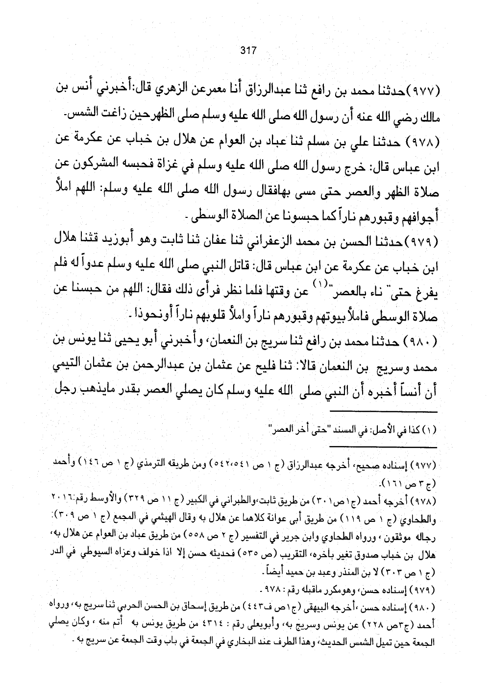 [980] إِسْنَاده حسن، أخرجه الْبَيْهَقِيّ (ج1 ص ف443) من طَرِيق إِسْحَاق بن الْحسن الْحَرْبِيّ ثَنَا سُرَيج بِهِ، وَرَوَاهُ أَحْمد (ج228) عَن يُونُس وسريج بِهِ، وَأَبُو يعلى رقم: 4314 من طَرِيق يُونُس بِهِ أتم مِنْهُ، وَكَانَ يُصَلِّي الْجُمُعَة حِين تميل الشَّمْس الحَدِيث، وَهَذَا الطّرف عِنْد البُخَارِيّ فِي الْجُمُعَة فِي بَاب وَقت الْجُمُعَة عَن سُرَيج بِهِ.