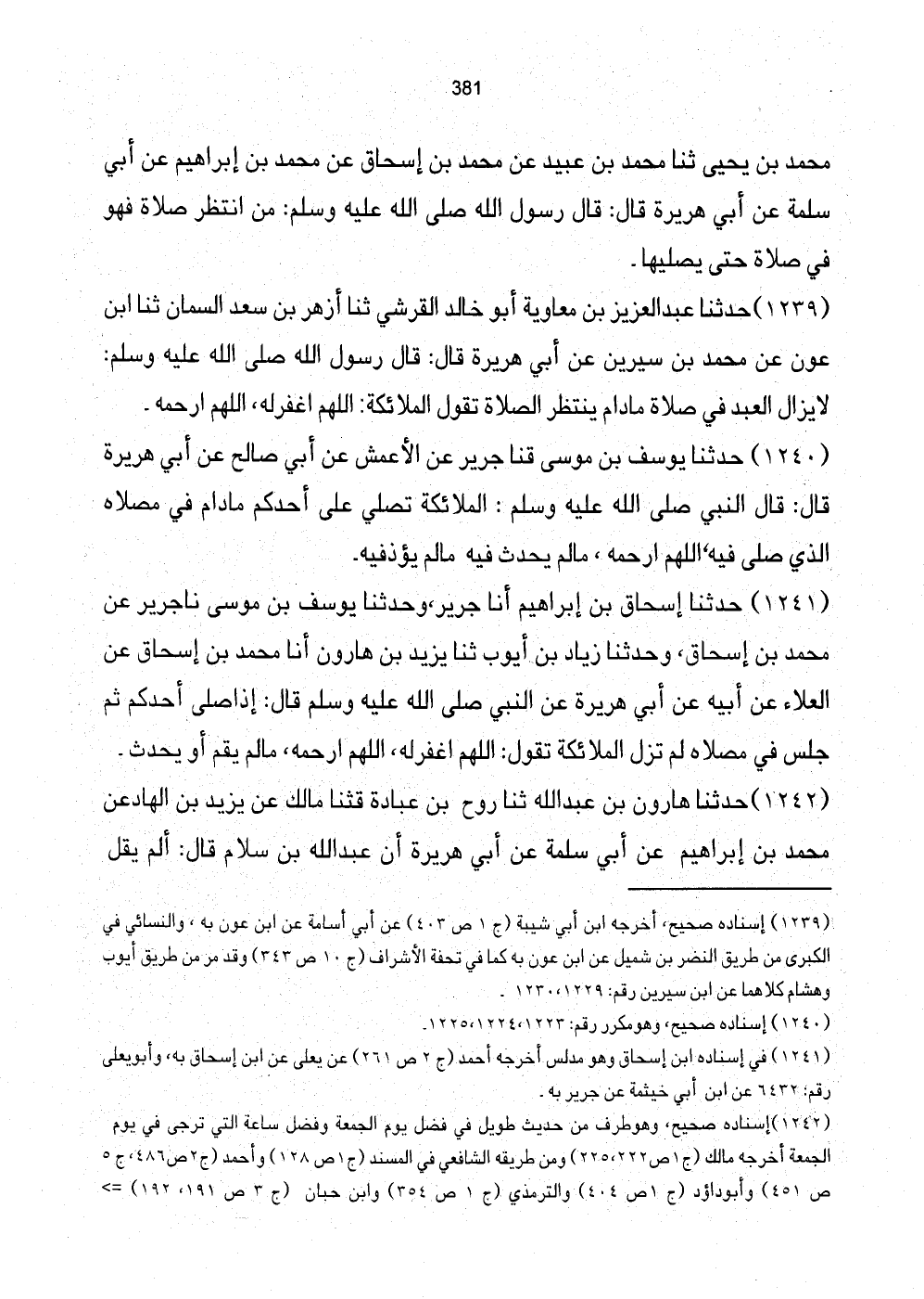 [1242] إِسْنَاده صَحِيح، وَهُوَ طرف من حَدِيث طَوِيل فِي فضل يَوْم الْجُمُعَة وَفضل سَاعَة الَّتِي ترجى فِي يَوْم الْجُمُعَة أخرجه مَالك (ج1 ص222، 225) وَمن طَرِيق الشَّافِعِي فِي الْمسند (ج1 ص128) وَأحمد (ج2 ص486، ج5 ص451) وَأَبُو داؤد (ج1 ص404) وَالتِّرْمِذِيّ (ج1 ص354) وَابْن حبَان (ج3 ص191، 192) =