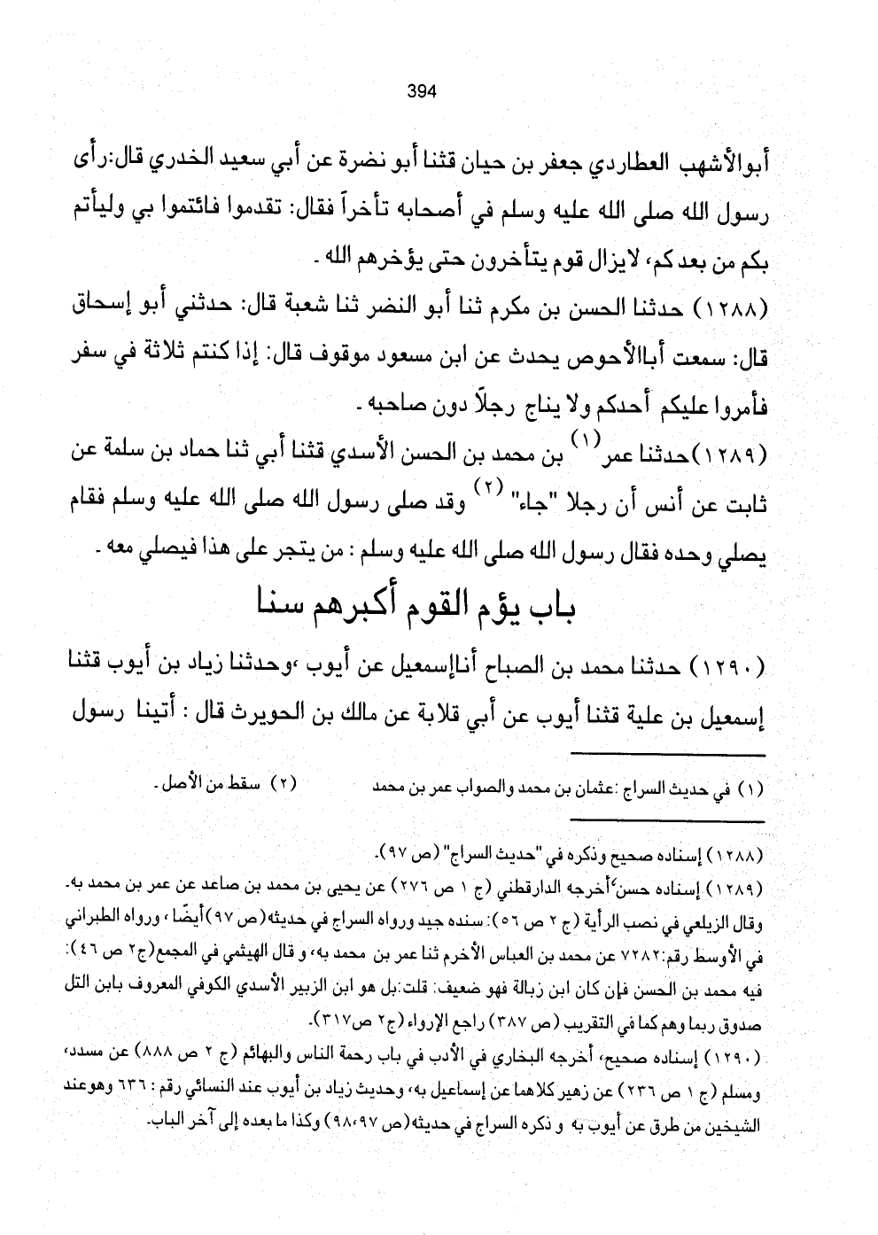 [1290] إِسْنَاده صَحِيح، أخرجه البُخَارِيّ فِي الْأَدَب فِي بَاب رَحْمَة النَّاس والبهائم (ج2 ص888) عَن مُسَدّد، وَمُسلم (ج1 ص236) عَن زُهَيْر كِلَاهُمَا عَن إِسْمَاعِيل بِهِ، وَحَدِيث زِيَاد بن أَيُّوب عِنْد النَّسَائِيّ رقم: 636 وَهُوَ عِنْد الشَّيْخَيْنِ من طرق عَن أَيُّوب بِهِ وَذكره السراج فِي حَدِيثه (ص97، 98) وَكَذَا مَا بعده إِلَى آخر الْبَاب.