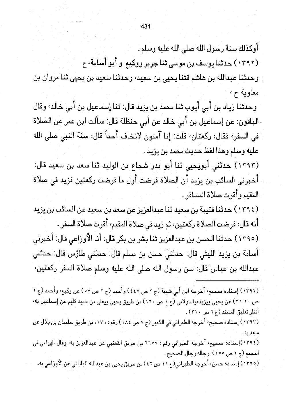 [1392] إِسْنَاده صَحِيح، أخرجه ابْن أبي شيبَة (ج2 ص447) وَأحمد (ج2 ص57) عَن وَكِيع، وَأحمد (ج2 ص20، 31) عَن يحيى وَيزِيد، والدولابي (ج1 ص160) من طَرِيق يحيى ويعلى بن عبيد كلهم عَن إِسْمَاعِيل بِهِ، انْظُر تَعْلِيق الْمسند (ج6 ص320) .