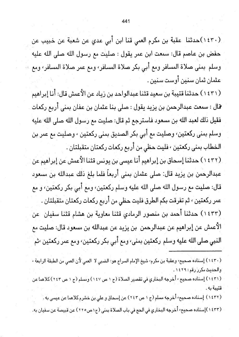 [1433] إِسْنَاده صَحِيح، أخرجه البُخَارِيّ فِي الْحَج فِي بَاب الصَّلَاة بمنى (ج1 ص225) عَن قبيصَة عَن سُفْيَان بِهِ.