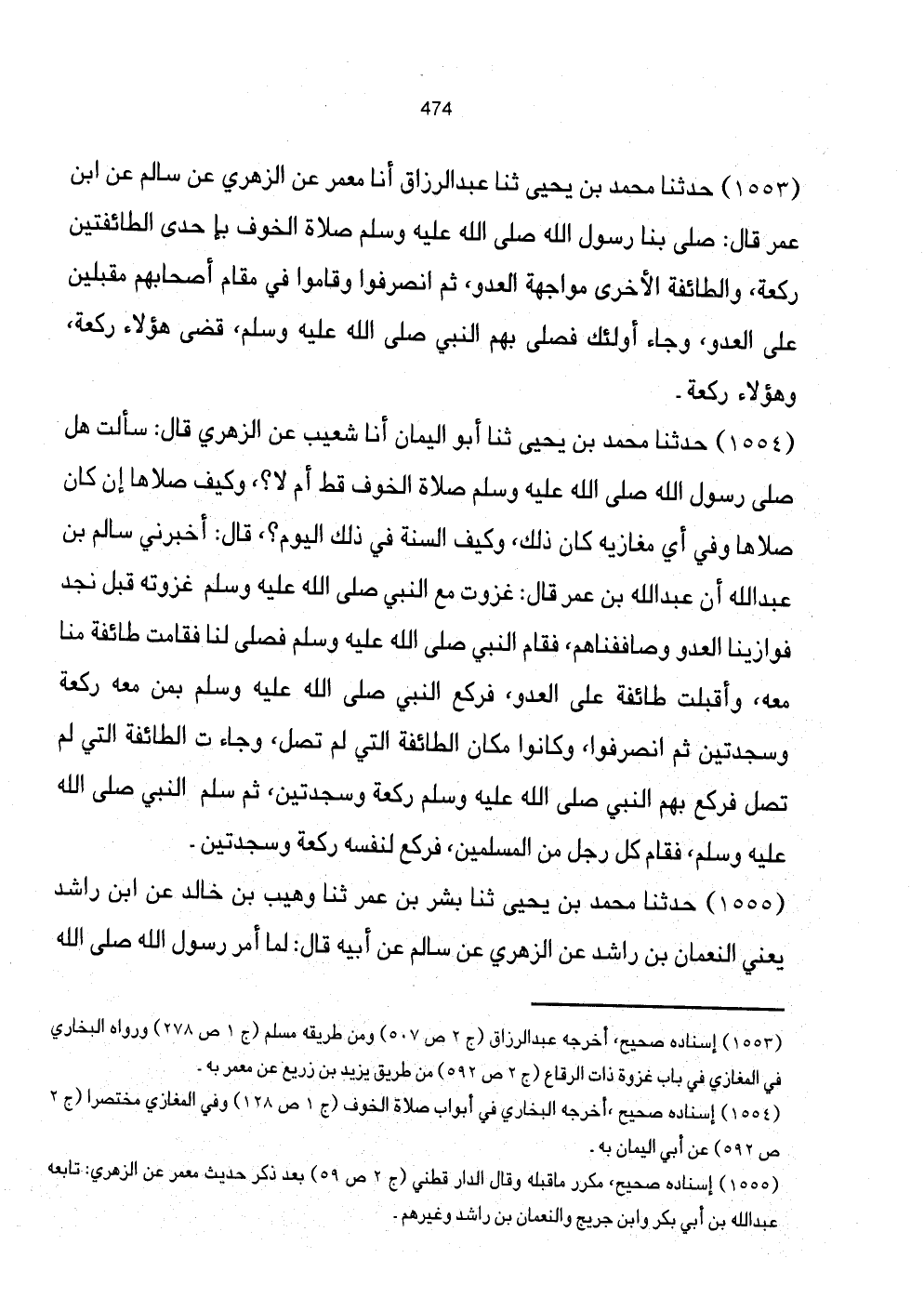[1553] إِسْنَاده صَحِيح، أخرجه عبد الرَّزَّاق (ج2 ص507) وَمن طَرِيق مُسلم (ج1 ص278) وَرَوَاهُ البُخَارِيّ فِي الْمَغَازِي فِي بَاب غَزْوَة ذَات الرّقاع (ج2 ص592) من طَرِيق يزِيد بن زُرَيْع عَن معمر بِهِ.