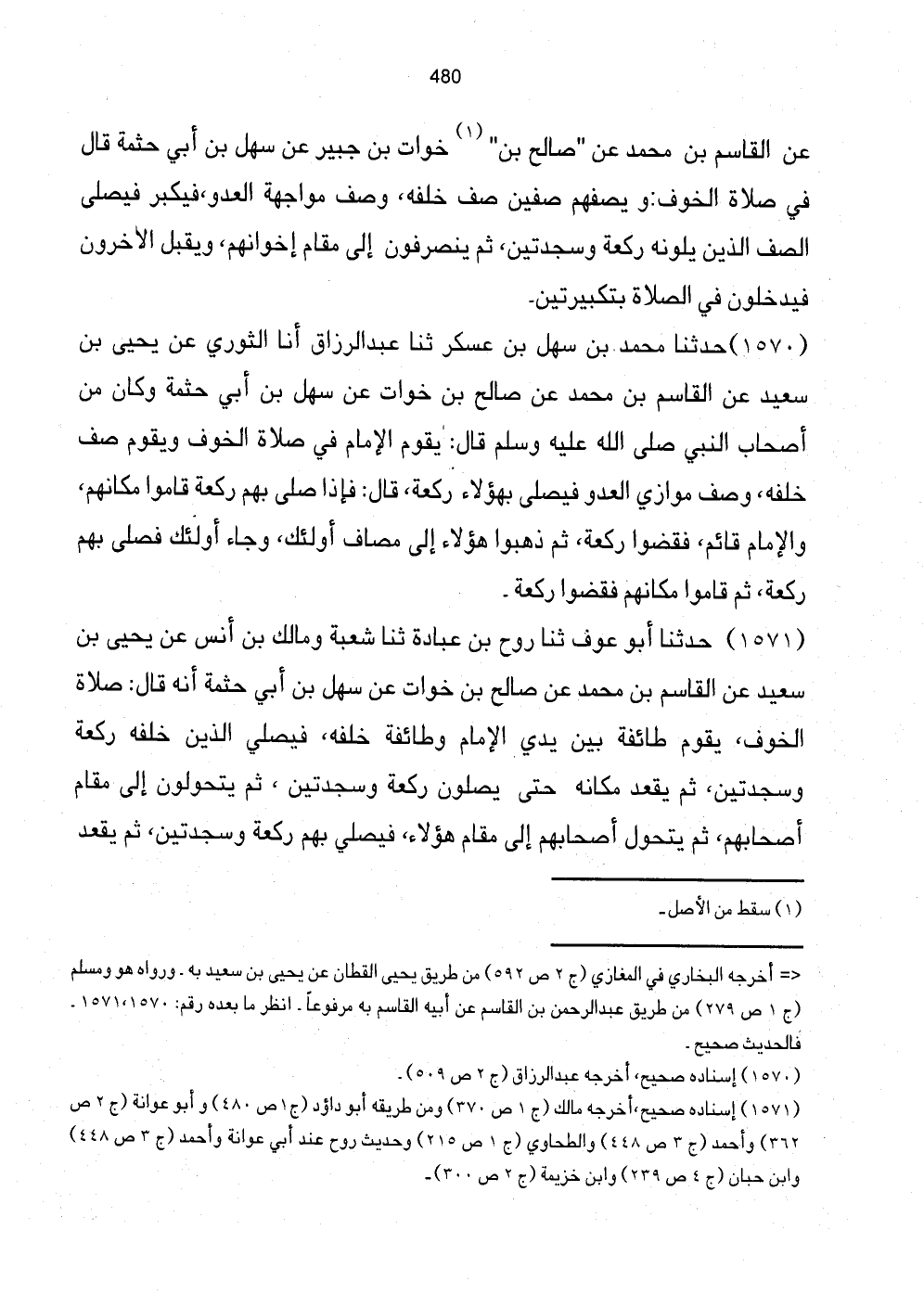 [1571] إِسْنَاده صَحِيح، أخرجه مَالك (ج1 ص370) وَمن طَرِيقه أَبُو داؤد (ج1 ص480) وَأَبُو عوَانَة (ج2 ص362) وَأحمد (ج3 ص448) والطَّحَاوِي (ج1 ص215) وَحَدِيث روح عِنْد أبي عوَانَة وَأحمد (ج3 ص448) وَابْن حبَان (ج4 ص239) وَابْن خُزَيْمَة (ج2 ص300) .