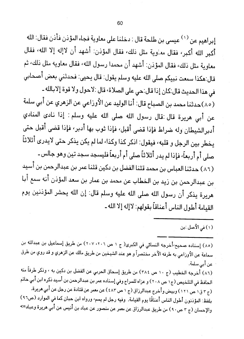 [85] إِسْنَاده صَحِيح أخرجه النَّسَائِيّ ي الْكُبْرَى (ج1 ص206، 207) من طَرِيق إِسْمَاعِيل بن عبد الله بن سَمَّاعَة عَن الاوزاعي بِهِ طرفه الآخر مُخْتَصرا وَهُوَ عِنْد الشَّيْخَيْنِ من طَرِيق مَالك عَن الزُّهْرِيّ وَقد رُوِيَ من طري عَن أبي سَلمَة.