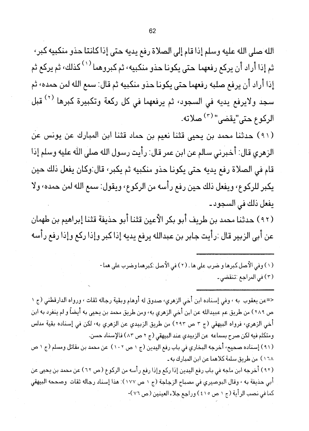 [91] إِسْنَاده صَحِيح، أخرجه البُخَارِيّ فِي بَاب رفع الْيَدَيْنِ (ج1 ص102) عَن مُحَمَّد بن مقَاتل وَمُسلم (ج1 ص168) من طيق سَلمَة كِلَاهُمَا عَن ابْن الْمُبَارك بِهِ.