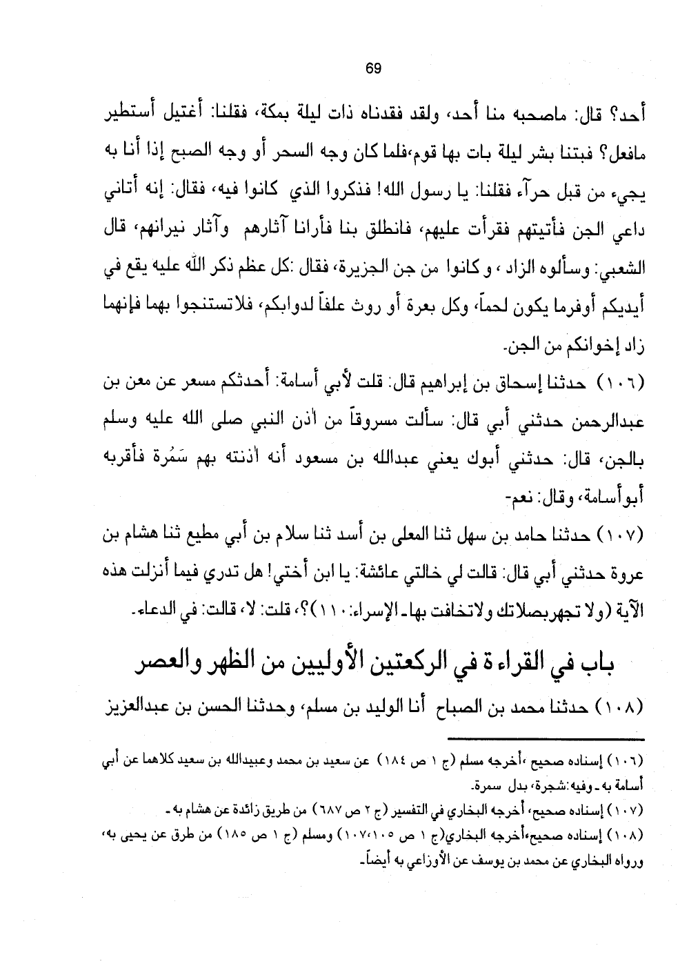 [106] إِسْنَاده صَحِيح، أخرجه مُسلم (ج ص184) عَن سعيد بن مُحَمَّد وَعبيد الله بن سعيد كِلَاهُمَا عَن أبي أُسَامَة بِهِ - وَفِيه شَجَرَة، بدل سَمُرَة.