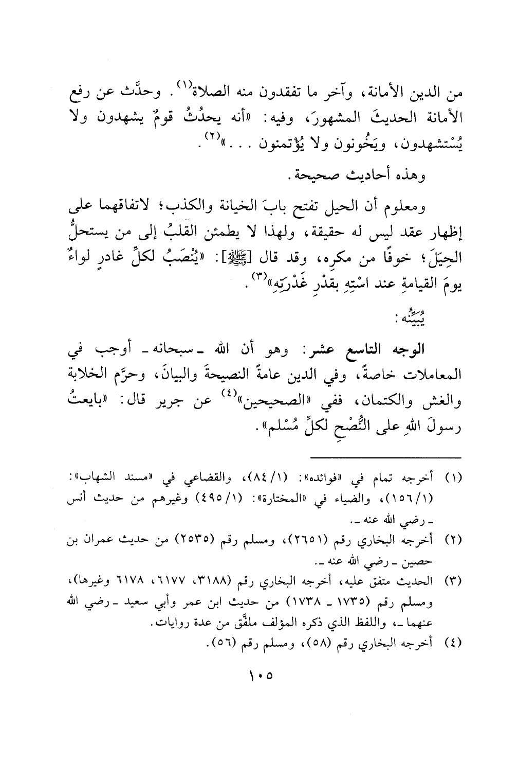 والغش والكتمان، ففي "الصحيحين" (4) عن جرير قال: "بايعت