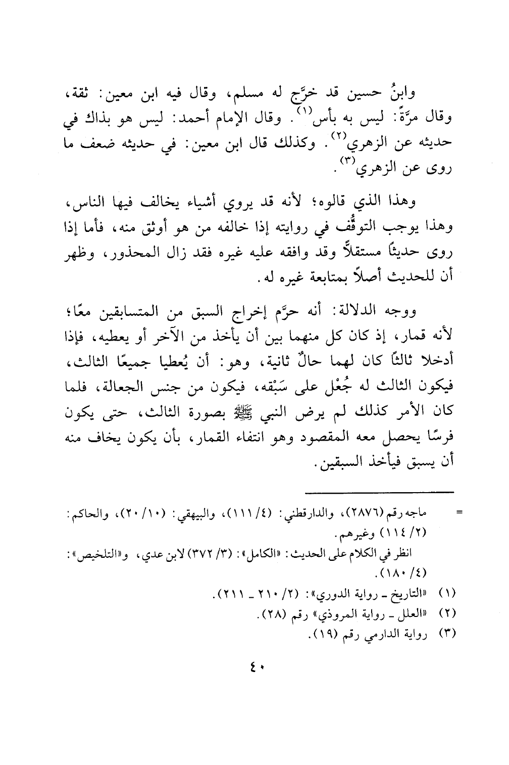 ووجه الدلالة: أنه حرم إخراج السبق من المتسابقين معا؛