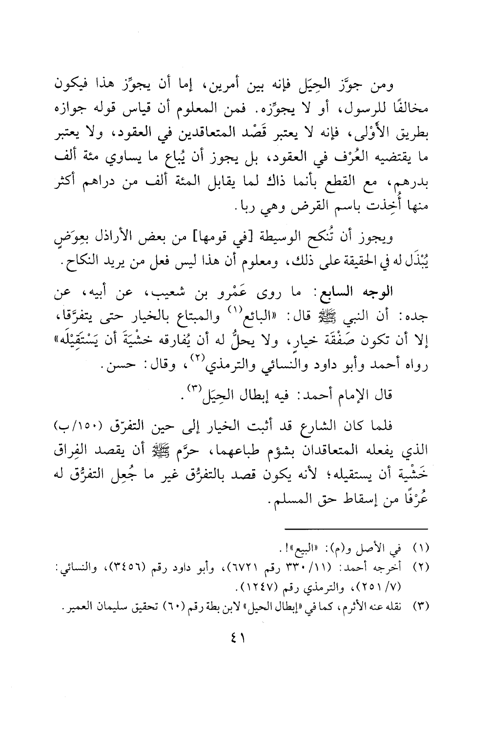 قال الامام أحمد: فيه إبطال الحيل (3).