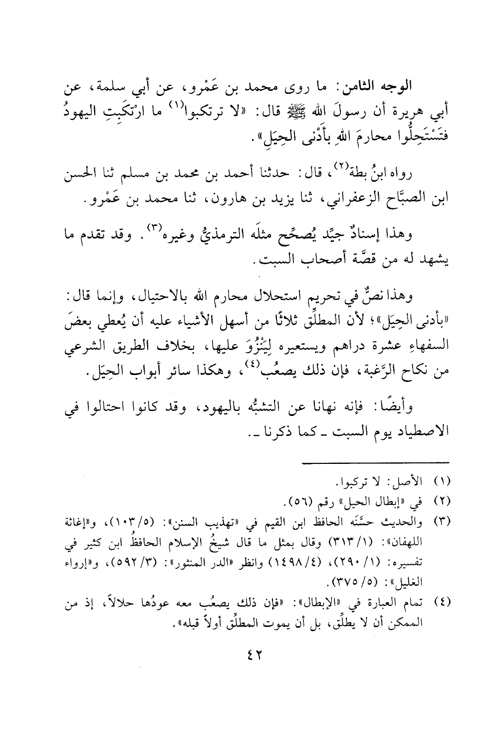 ابي هريرة ان رسول الله غ! ي! قال: "لا ترتكبوا (1) ما ارتكبت اليهود