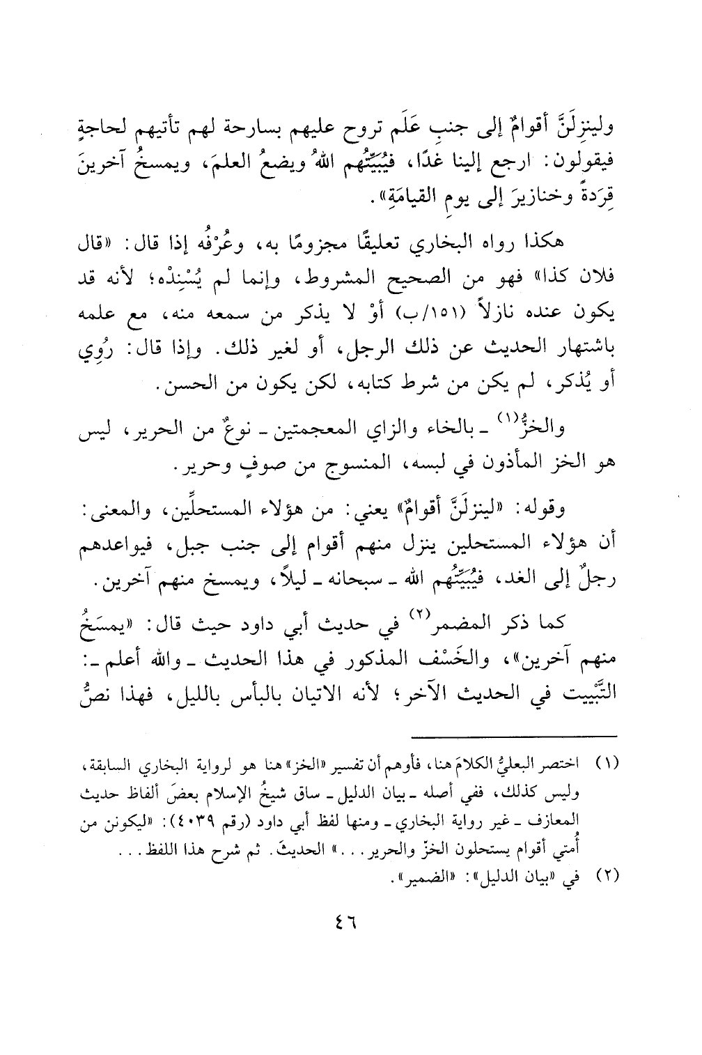 أمتي أقوام يستحلون الخز والحرير. . . " الحديث. ثم شرح هذا اللفط. . .