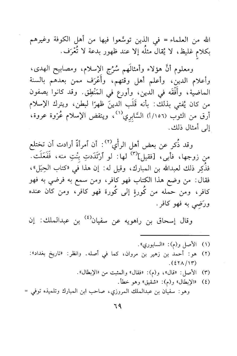 ومعلوم ان هؤلاء وامثالهم سرج الاسلام، ومصابيح الهدى،
