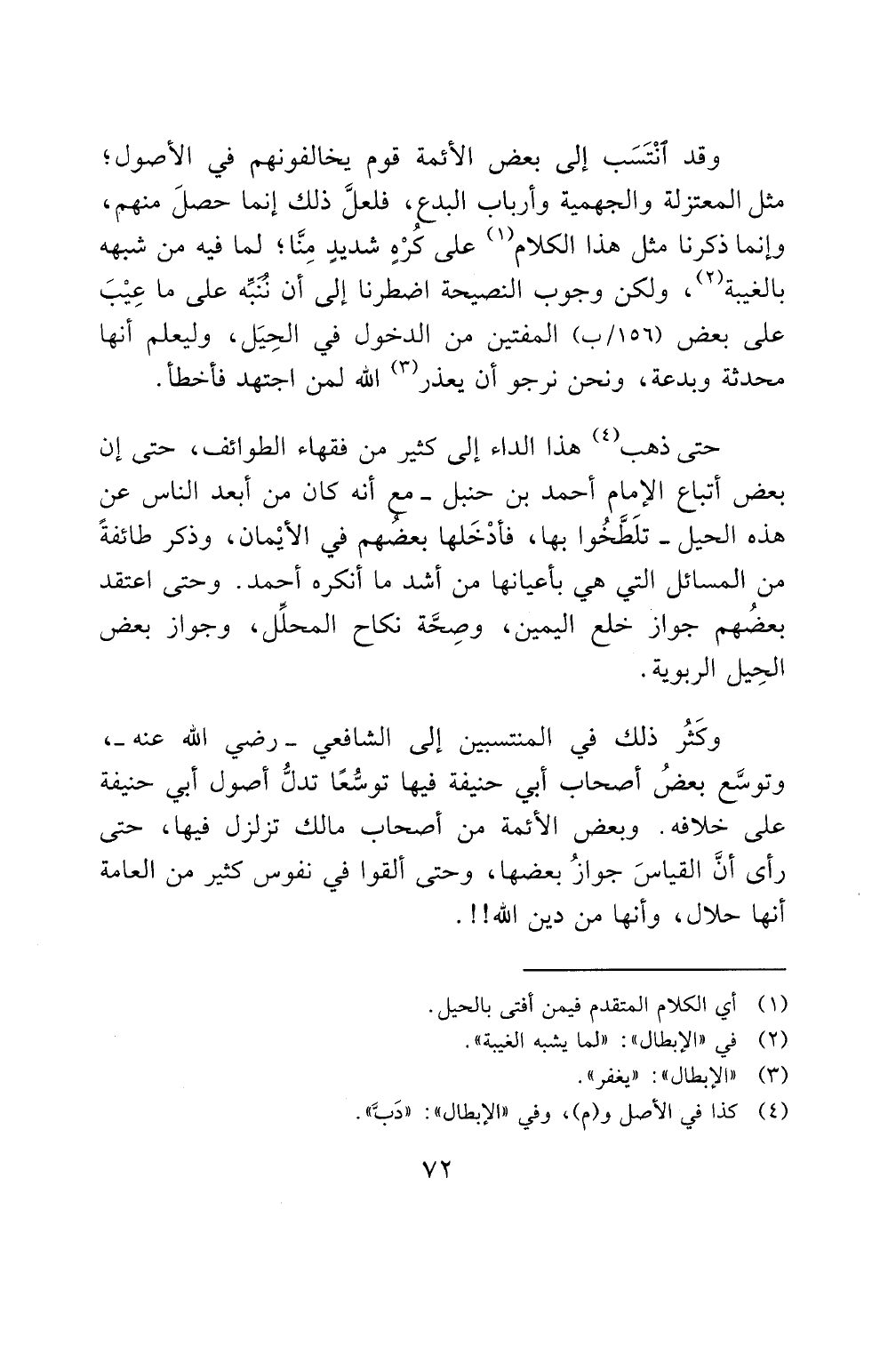 على بعف (156/ب) المفتين من الدخول في الحيل، وليعلم أنها