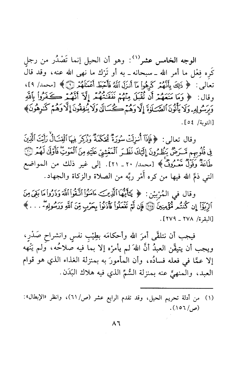 ويجب ان يتيقن العبد ان الله لم يأمره إلا بما فيه صلاحه، ولم ينهه