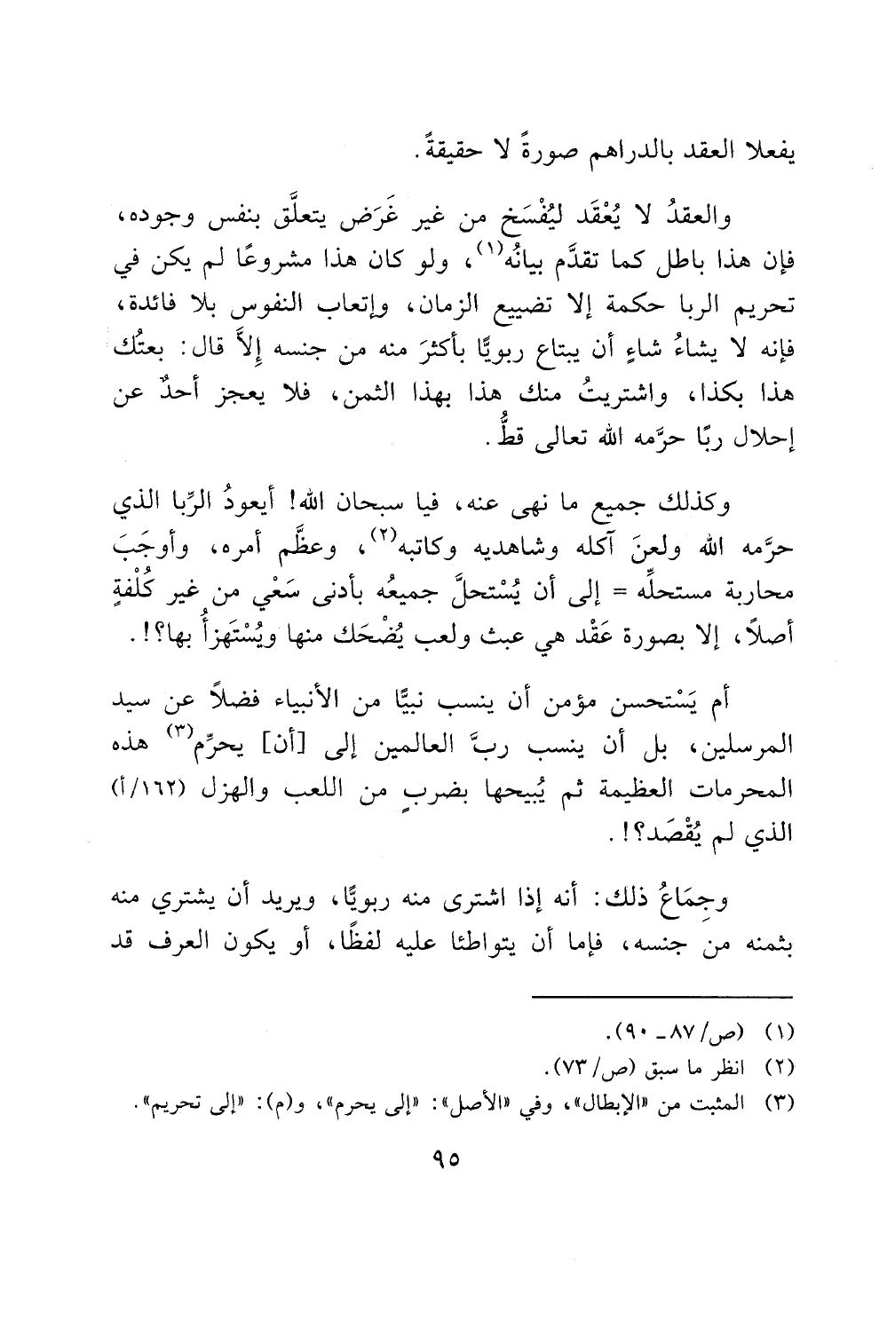 يفعلا العقد لالدراهم صورة لا حقيقة.