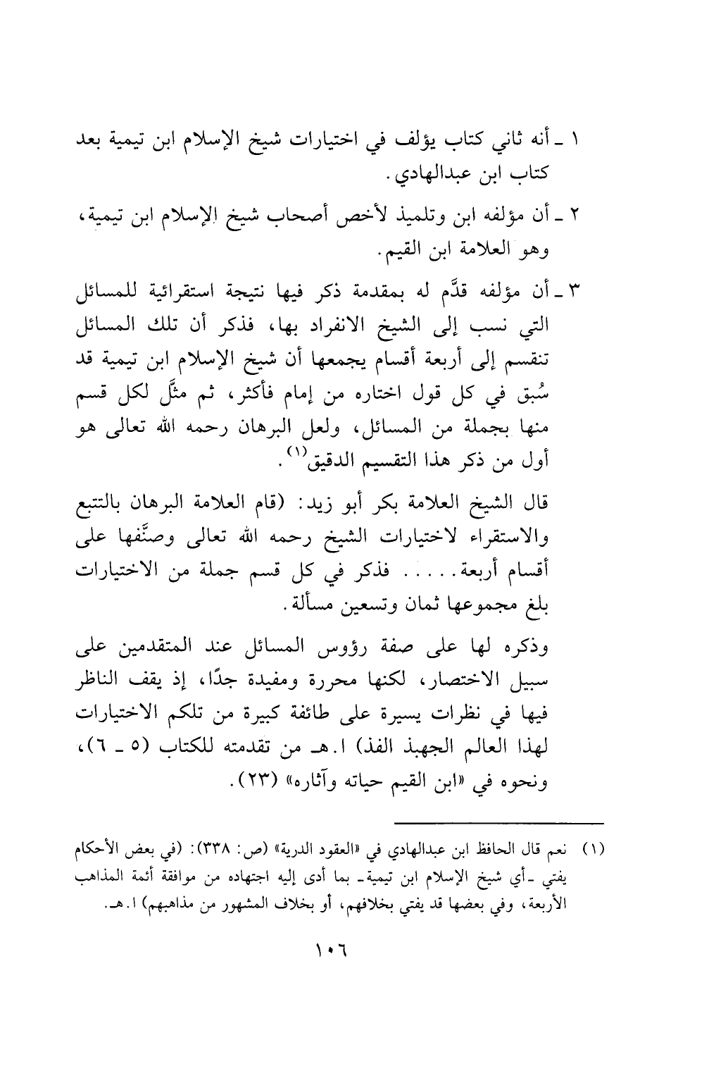 أنه ثاني كتاب يؤلف في اختيارات شيخ الإسلام ابن تيمية بعد