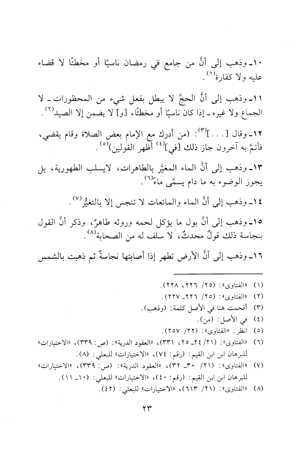 للبرهان ابن ابن القيم: (رقم: 0 4)، "الاختيارات " للبعلي: (10 - 11).