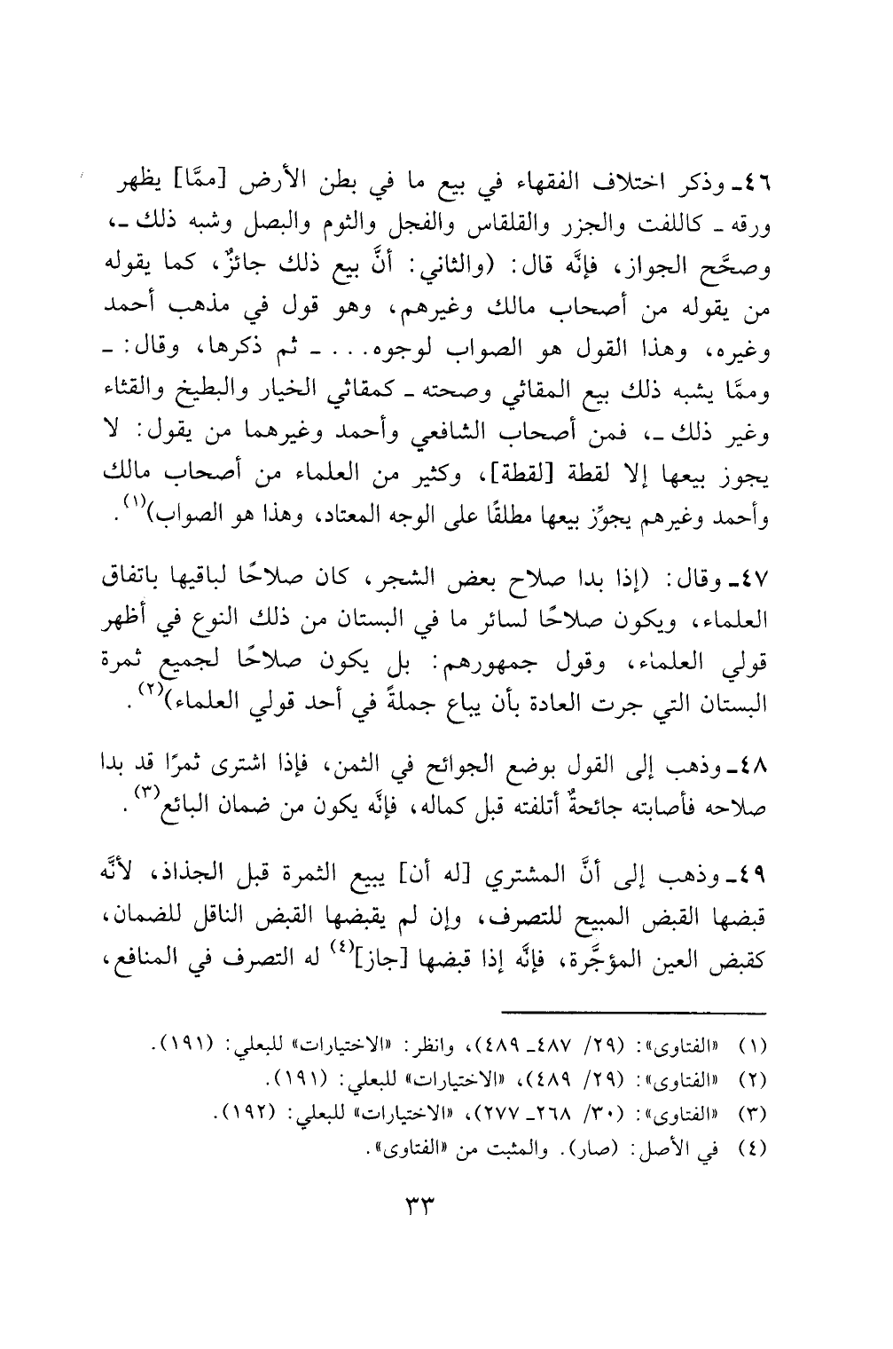 47 - وقال: (إذا بدا صلاح بعض الشجر، كان صلاحا لباقيها باتفاق