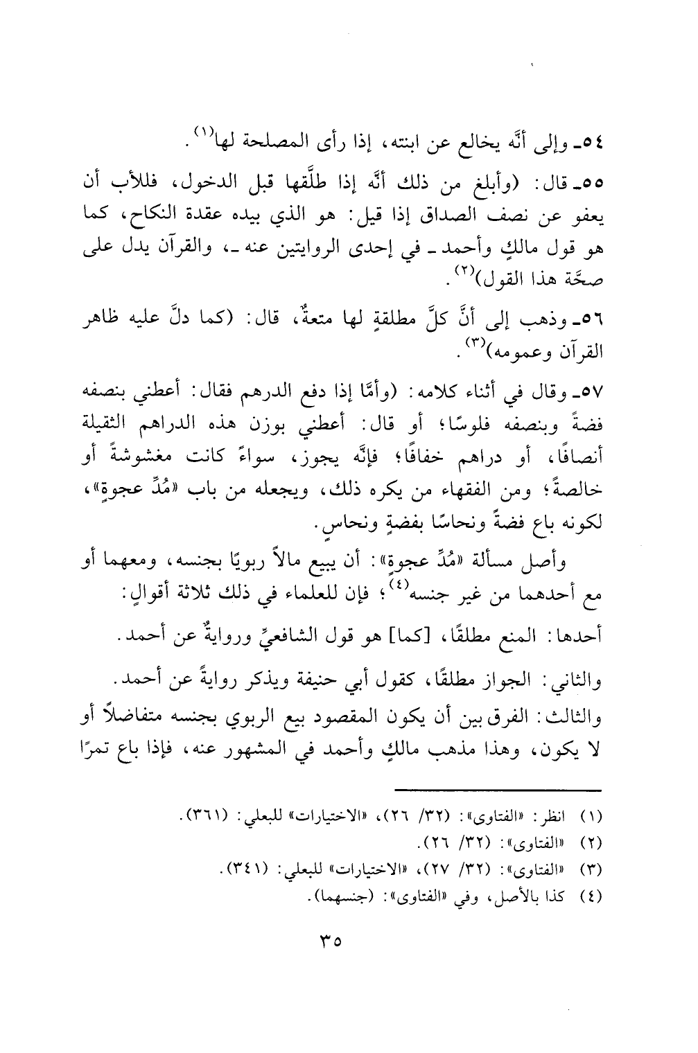 ا نظر: " الفتاوى ": (2 3/ 6 2)، " ا لاختيا را ت " للبعلي: (1 6 3).