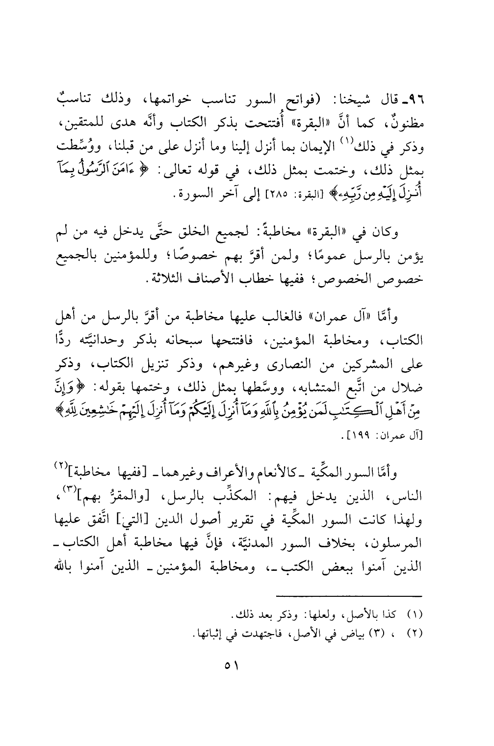 96 - قال شيخنا: (فواتح السور تناسب خواتمها، وذلك تناسب