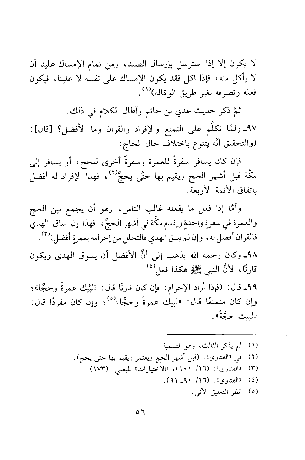 97 - ولما تكلم على التمتع والافراد والقران وما الافضل؟ [قال]: