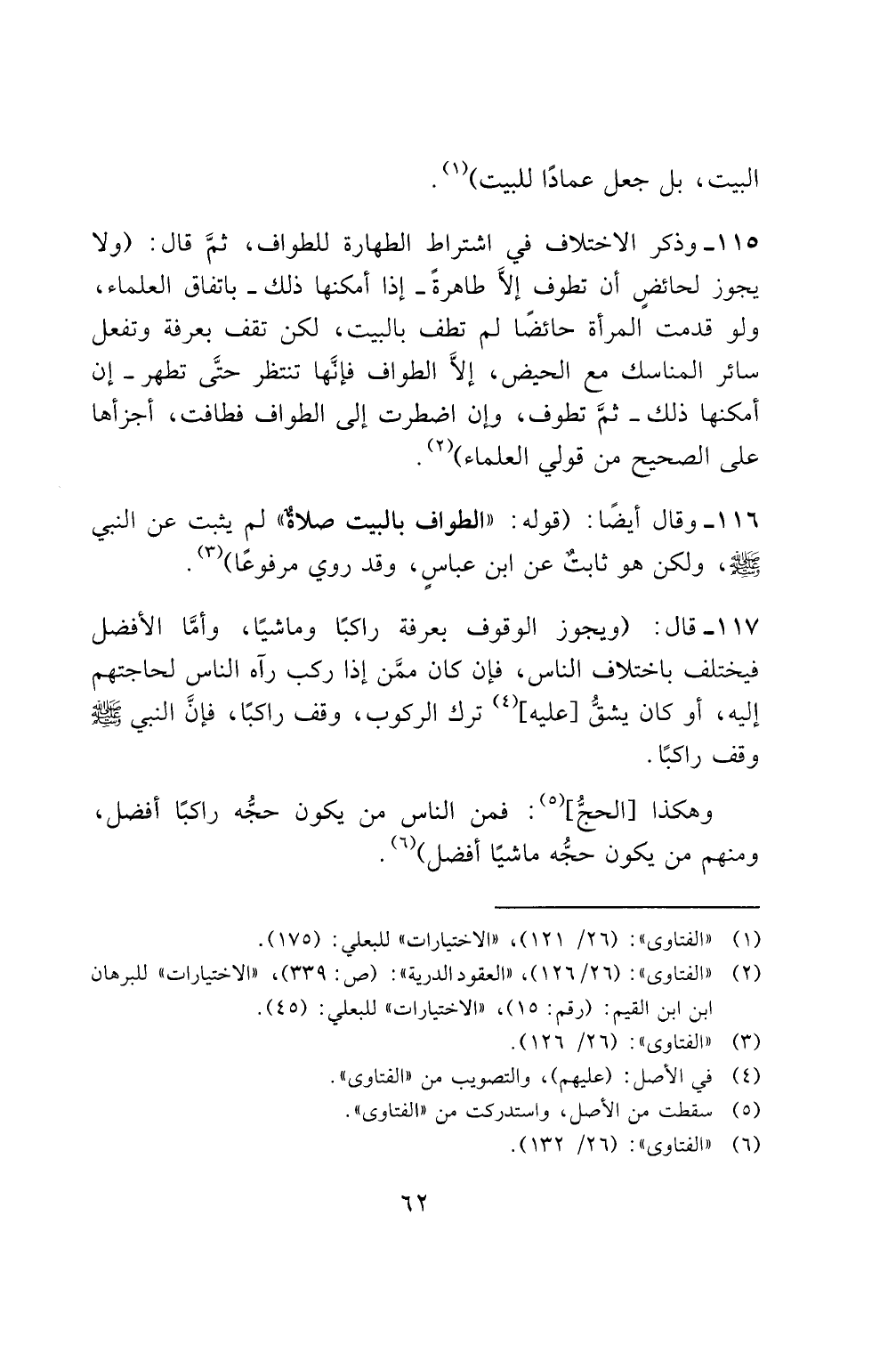 " الفتاوى ": (6 2/ 1 2 1)، " ا لاختيا را ت " للبعلي: (5 7 1).