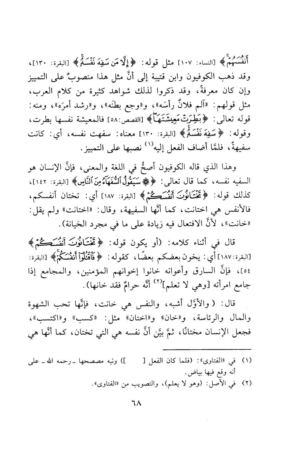 أنفسهخ) [المساء: 107] مثل قوله: < إلا من سفه نفسو) [البقرة: 130]،