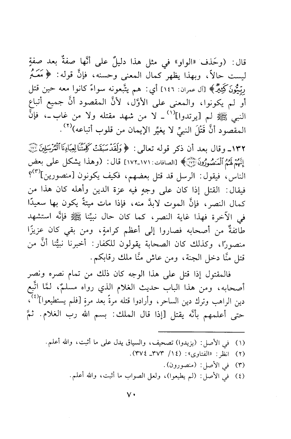 132 - وقال بعد أن ذكر قوله تعالى: < ولمدسبقت! تنالعبادنا المرسين *7*