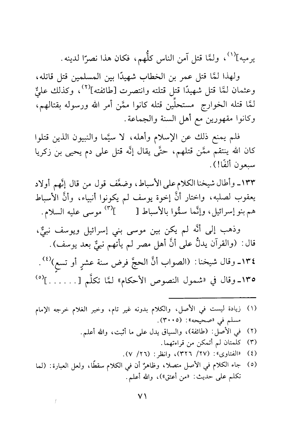 135 - وقال في "شمول النصوص الاحكام " لما تكلم [. . . . . .] (5)