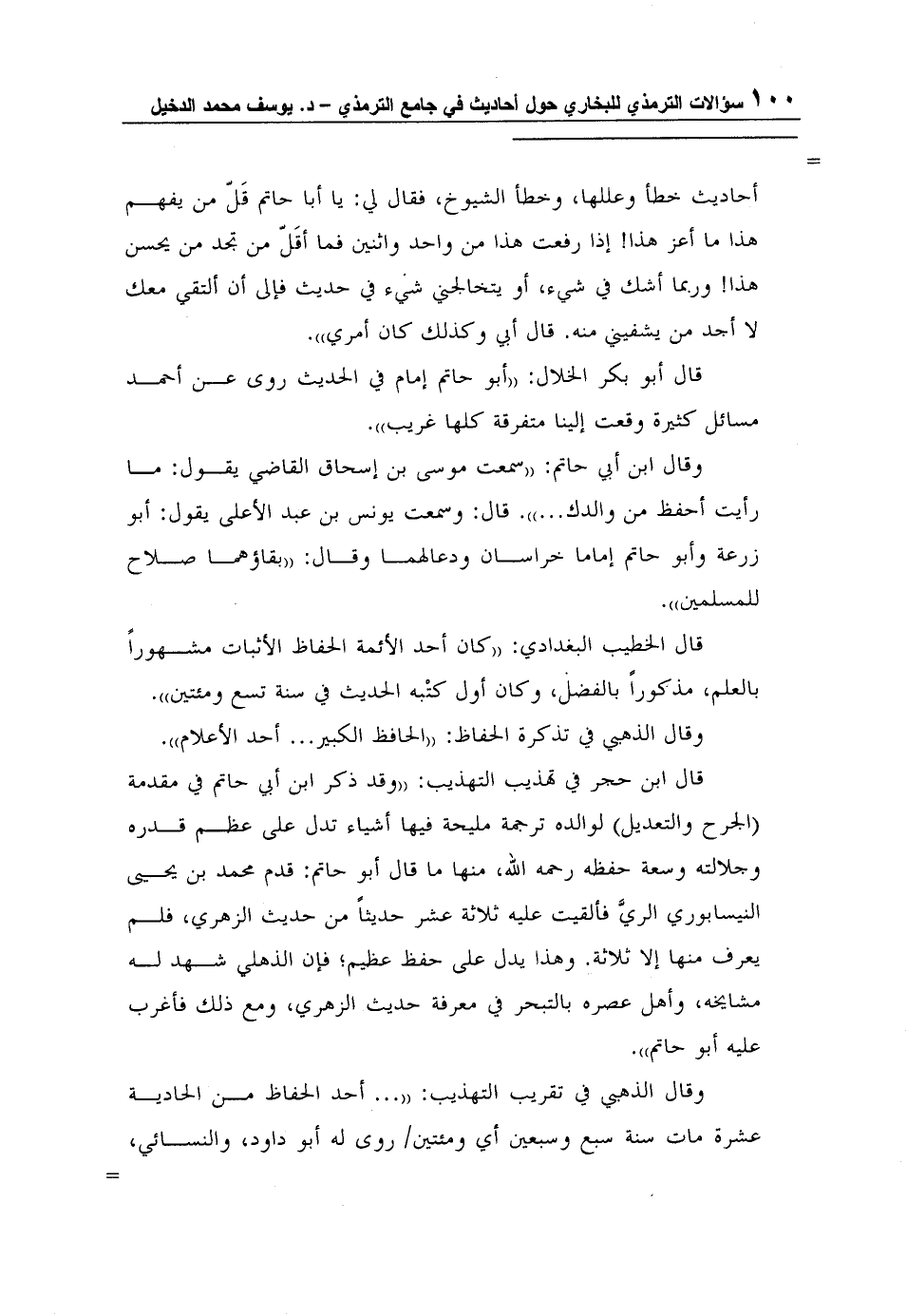 كتاب سؤالات الترمذي للبخاري حول أحاديث في جامع الترمذي