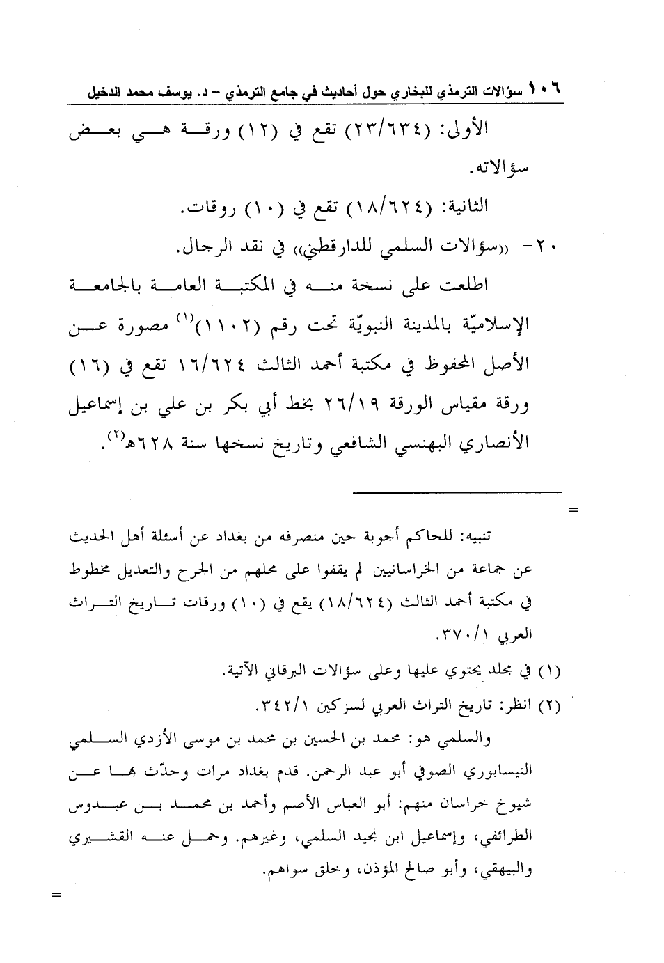1 في مجلد يحتوي عليها وعلى سؤالات البرقاني الآتية.