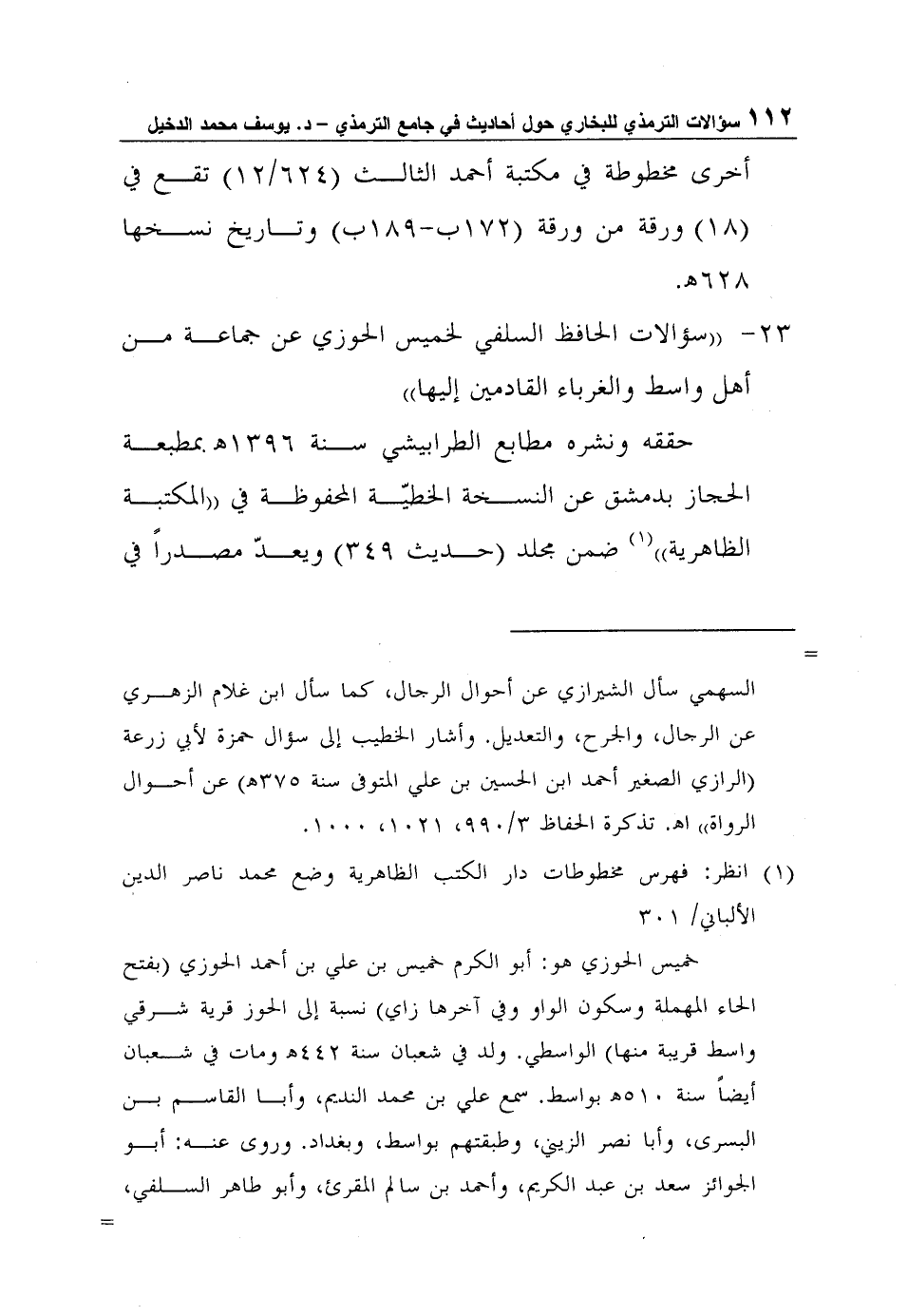 1 انظر: فهرس مخطوطات دار الكتب الظاهرية وضع محمد ناصر الدين الألباني/ 301