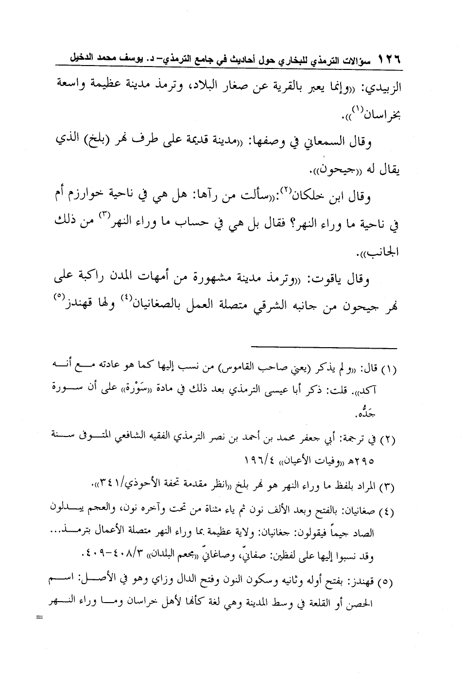 الزبيدي: "وإنما يعبر بالقرية عن صغار البلاد، وترمذ مدينة عظيمة واسعة بخراسان (1") .